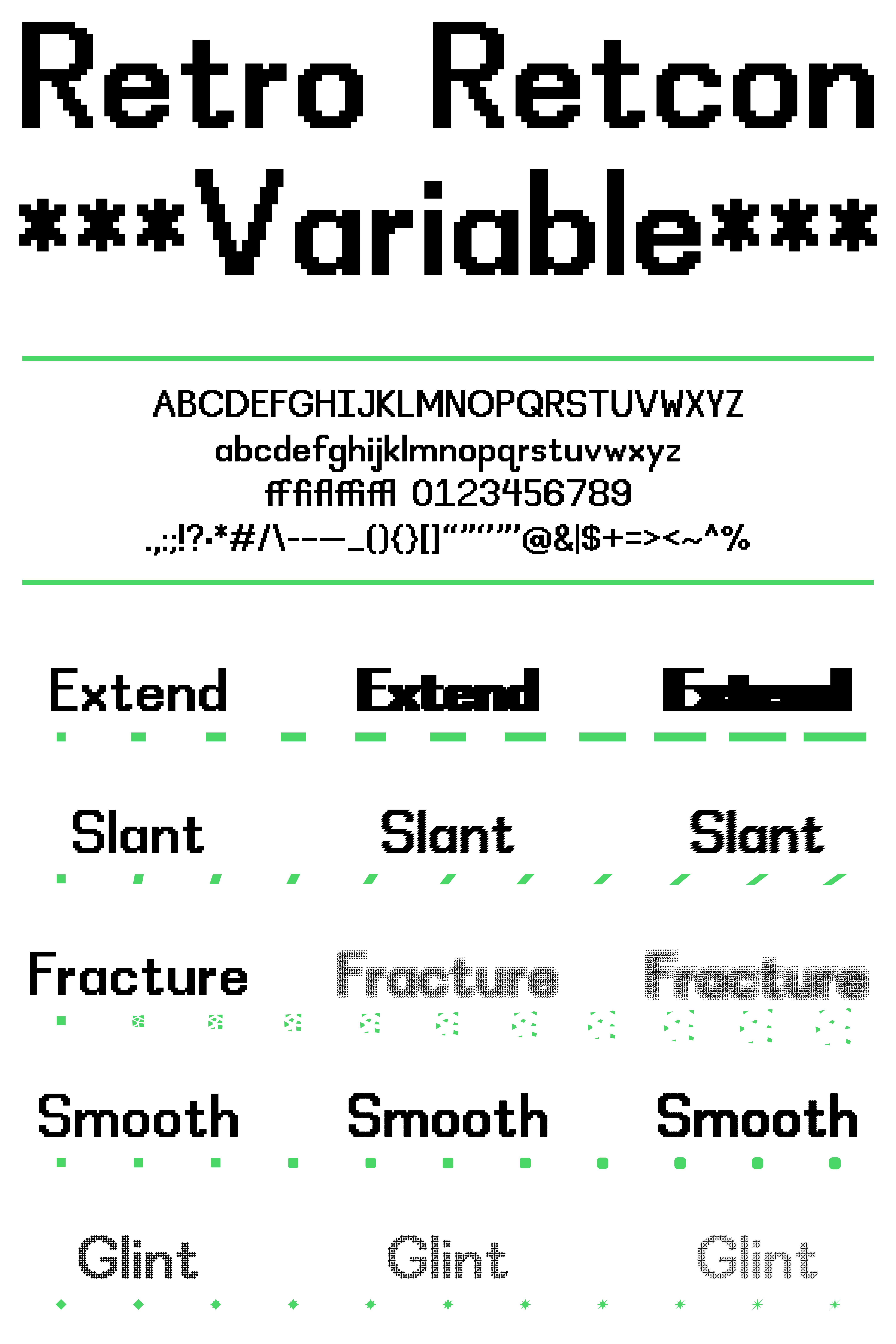 These variable font experiments build off of my previously made pixel font, and vary the pixel to create different effects.